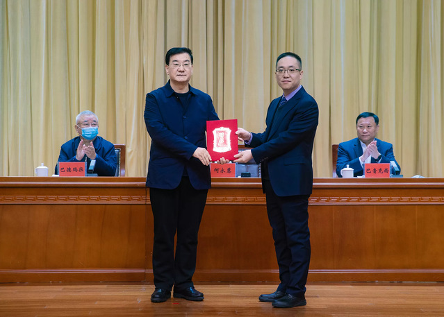 博州党委书记何永慧为智库专家代表张若宇教授颁发聘书