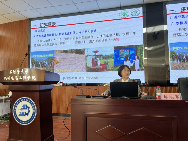 徐志佳副教授做报告邹湘军教授对研发农业采摘机器人存在的难点及国内外的研究热点进行详细的介绍,讲述了研发猕猴桃采摘机器人、苹果采摘机器人、荔枝采摘机器人以及果蔬采摘机器人背后的关键科技问题,攻关思路以及相关科研成果在广州果园中的应用,还特别介绍了机器视觉技术在病虫害的识别检测、虚拟仿真在智能设计与制造中的应用等研究热点,拓展了学院师生的科研视野。