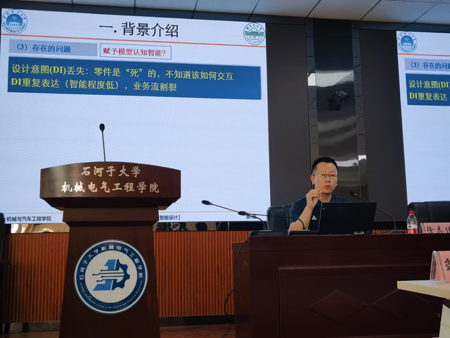 徐志佳副教授从自己的研究课题出发,向学院师生介绍了多孔功能结构的设计与优化,并展示了团队研发的基于关联结构认知的智能装配方法的一体化智能建模仿真,在分散的100多个零件中,通过该方法可以实现零件的自主组装并添加配合,获得学院师生的接连赞叹。最后讲述了该方法的进一步研究,以实现前期该技术的工业应用。