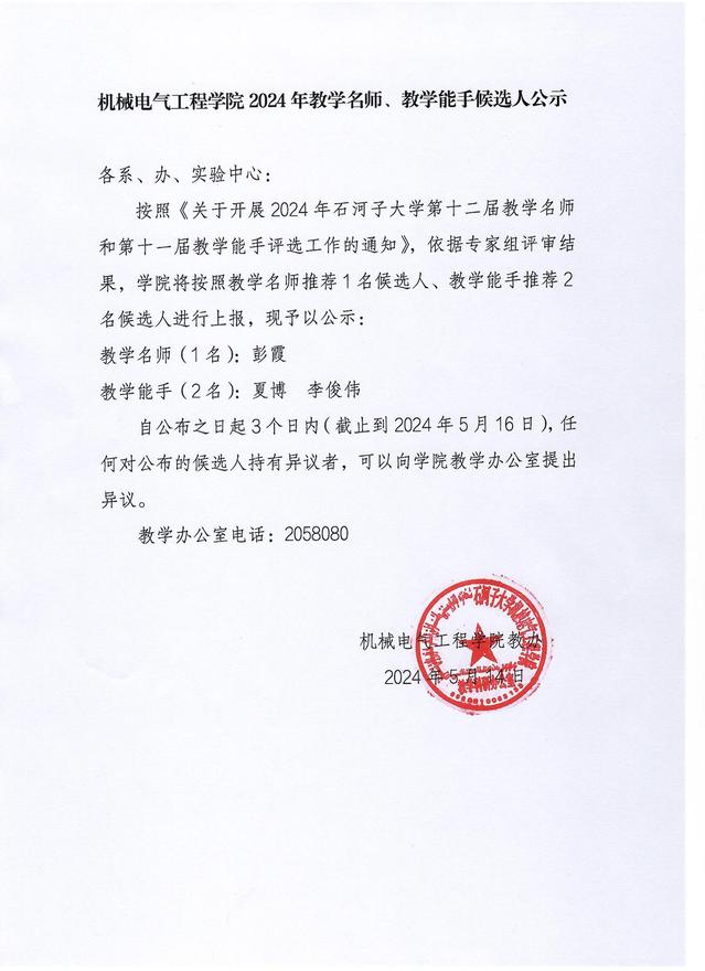金沙检测线路js952024年教学名师、教学能手候选人公示