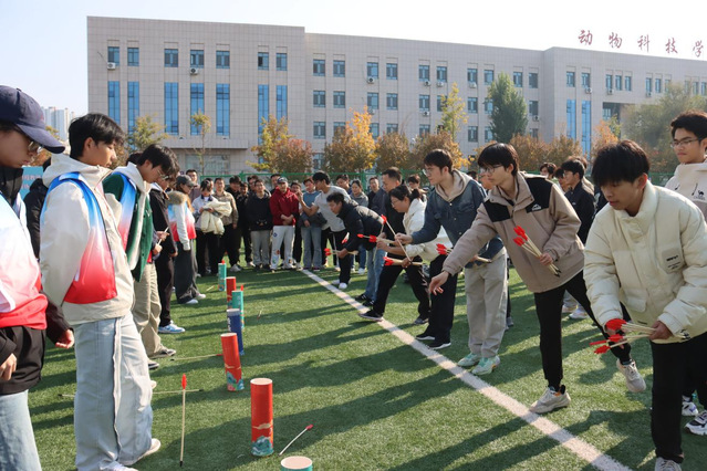 在充满古韵的“投壶”体验区,现场气氛热烈而雅致。师生们手持箭矢,凝神聚气,瞄准壶口,每一次精准的投掷都引来满堂喝彩。投壶作为我国传统礼仪和宴饮游戏,承载着深厚的文化底蕴。通过这一环节,师生们在体验竞技乐趣的同时,也亲身感受到了中华优秀传统文化的独特魅力,增强了文化自信与民族自豪感,让民族团结的根脉在文化传承中愈发深厚。