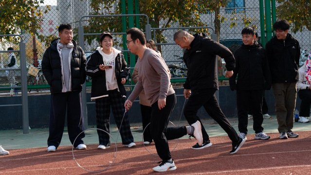 本次运动会以“趣味引领、师生共融、团结协作”为宗旨,打破传统竞技模式,精心设计了多人绕“8”字跳大绳、接力滚铁环、团队协作投壶、双人合力运球和集体拔河等5个兼具趣味性、协作性与文化性的比赛项目。赛场上,师生默契配合,既有速度与激情的比拼,也有智慧与信任的考验。