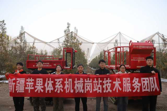 2025 年 10 月26 日至11月 10 日,金沙检测线路js95、新疆苹果产业体系果园机械化技术与装备岗李景彬教授团队赴第一师五团开展自主研制的两款自走式多功能采摘平台技术推广与现场演示活动。